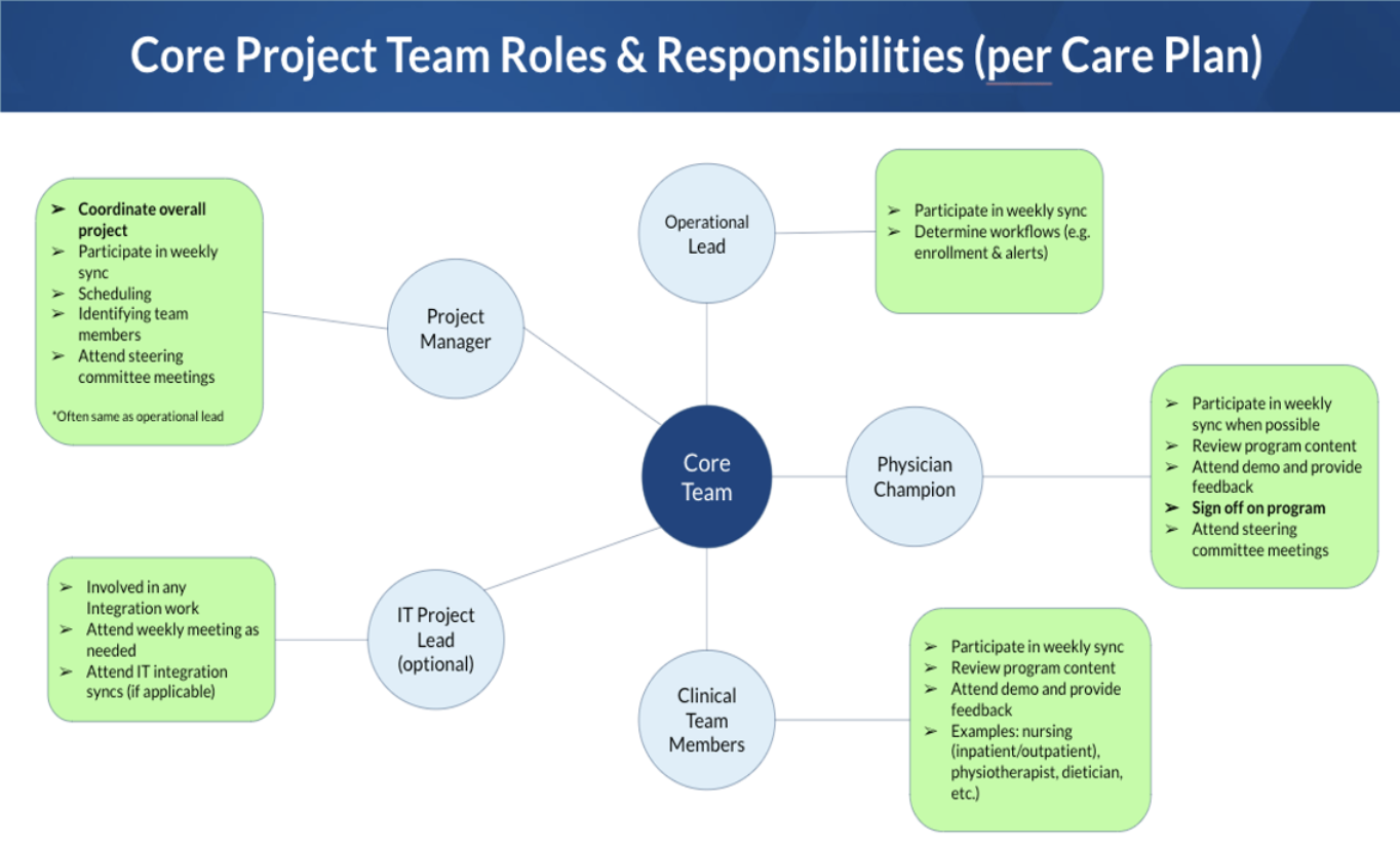 Physician Champion: This will be the lead provider to support and give final sign-off on the program. They would be encouraged to attend weekly meetings, offer input on content, sign off on final content and alerts, and attend steering committee meetings.