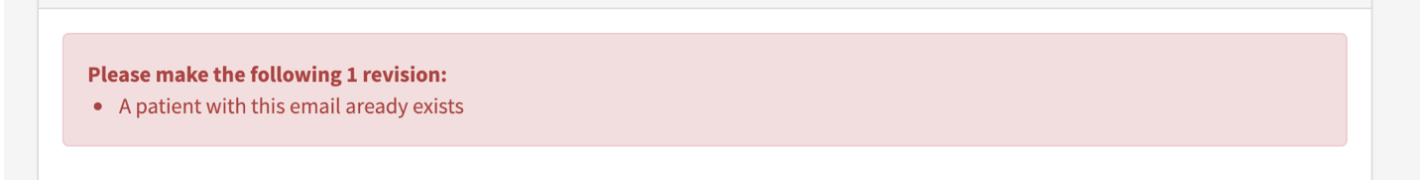 This means the patient has already used SeamlessMD for a previous procedure and was enrolled using the same email address or phone number you are attempting to use. The system does not allow the same email address or phone number to be associated with more than 1 account.