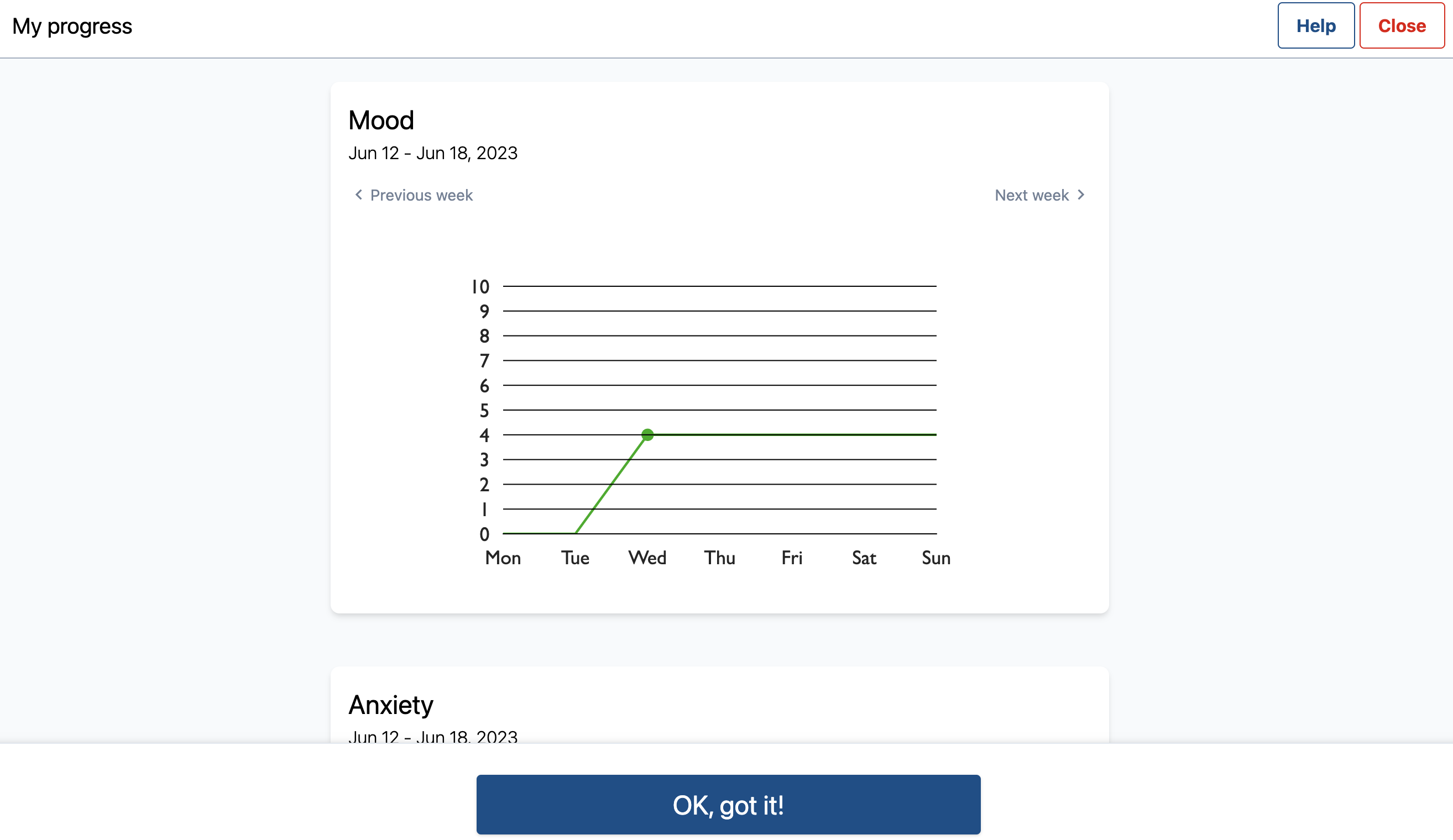 The home page is the page within the patient's program that will remind them at which stage of the program they are at and provide them with reminders. Patients will be able to acknowledge the reminders that appear on their home page by clicking 'Okay, I have read this'.