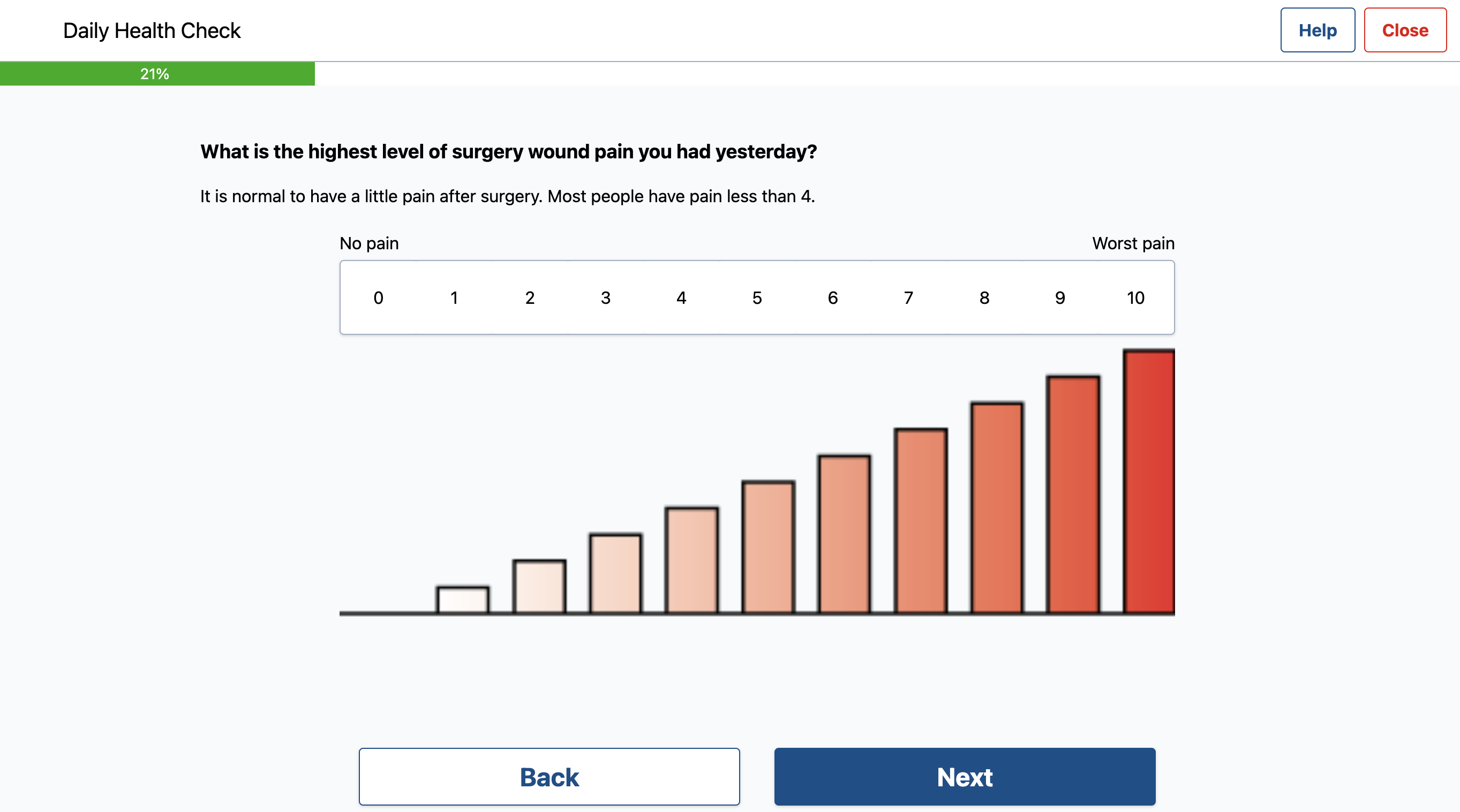 Once their discharge date is set in their account, they will receive daily health checks (along with the to-do lists and reminders) to help them track their recovery and progress at home.