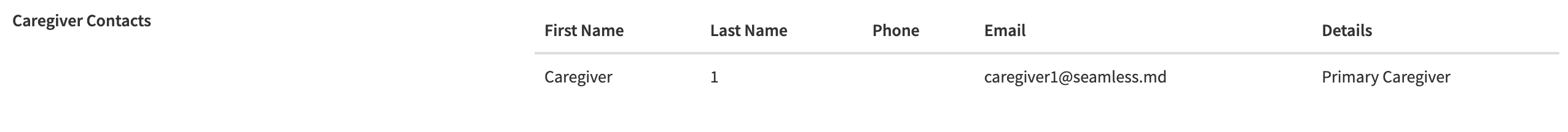 You will be able to confirm that caregiver information has been included on the patient's account by going to the 'Details' tab on the individual patient profile and scrolling down to the 'Caregiver Contacts' section.