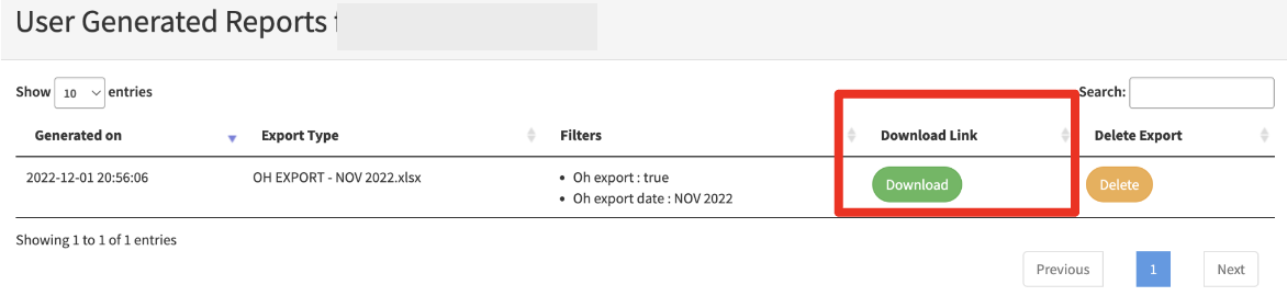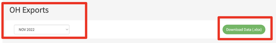 - Scroll down to the ‘OH Export’ section and select the appropriate month you would like to report.