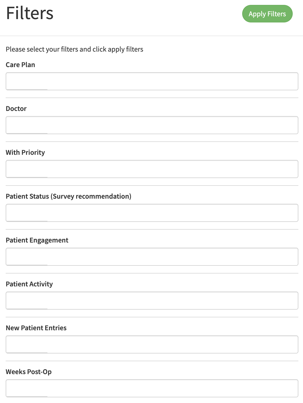 - From the patient roster, click the "Filters" button on the top right.